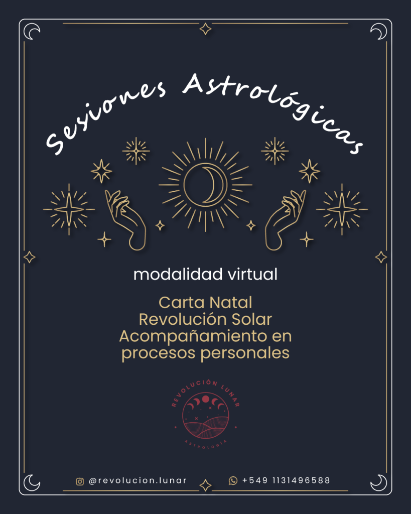 Las sesiones astrológicas son espacios individuales, donde a partir de la lectura de la carta natal, la revolución solar, los ciclos, tránsitos, vamos trabajando sobre los procesos personales de la persona consultante.