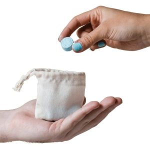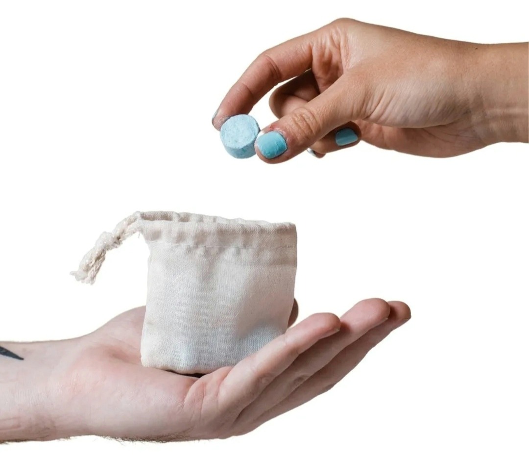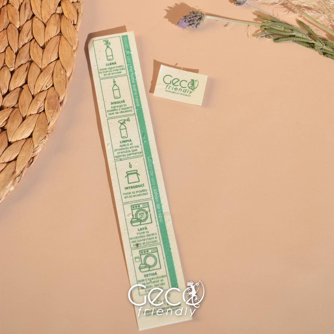 Modo de uso: Poner la pastilla en la eco bolsa dentro del lavarropas e iniciar el lavado. Quitar y secar la bolsa al terminar.
