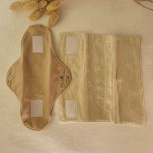 Incluye: 2 bases con alas impermeables – 3 toallitas absorbentes diurnas (6x20cm) – 1 toallita nocturna (6,5x24cm) – 1 sobre de tela impermeable – 1 poster color – 1 bolsa de tela